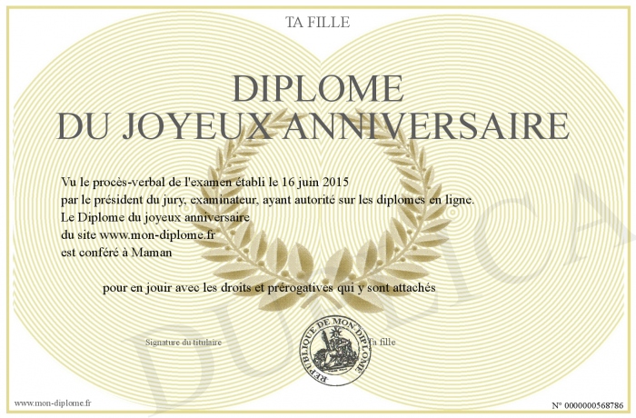Envoyez par email votre Diplôme du joyeux anniversaire personalisé