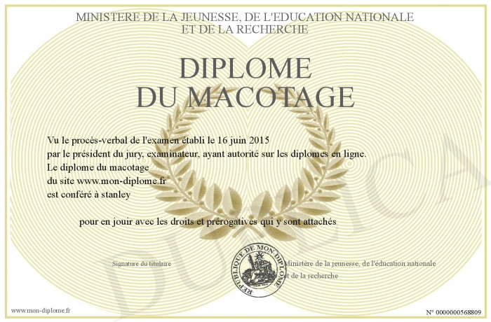 Envoyez par email votre diplome du macotage personalisé
