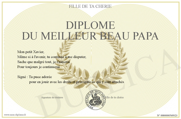 Envoyez par email votre diplôme du meilleur beau papa personalisé