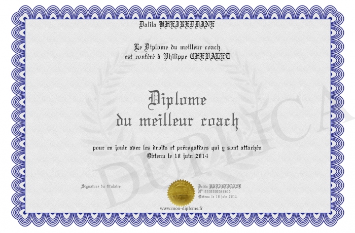 Envoyez par email votre Diplôme du meilleur coach personalisé