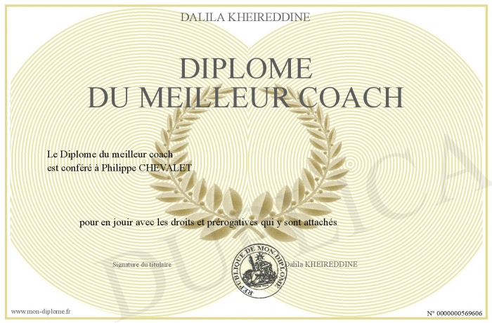 Envoyez par email votre Diplôme du meilleur coach personalisé