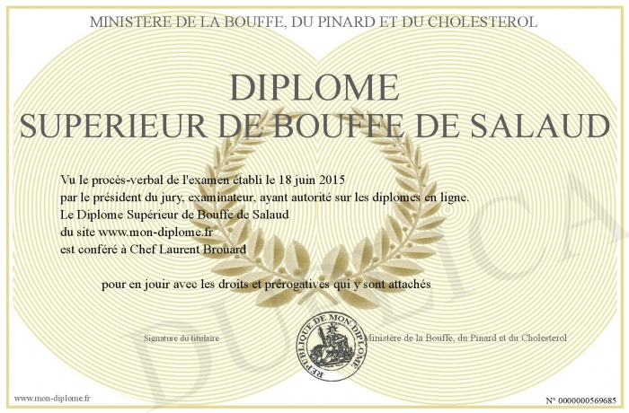 Envoyez par email votre Diplôme Supérieur de Bouffe de Salaud personalisé