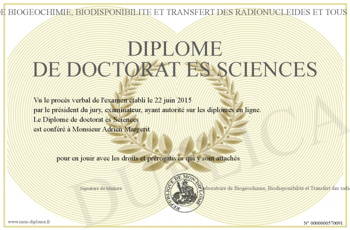 Envoyez par email votre Diplôme de Doctorat ès Sciences personalisé