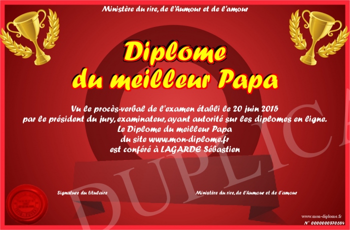 Envoyez par email votre Diplome du meilleur Papa personalisé