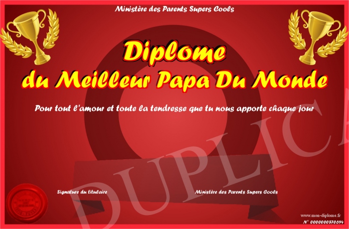 Envoyez par email votre Diplôme du Meilleur Papa Du Monde personalisé