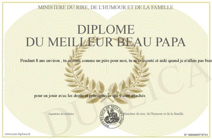 Envoyez par email votre Diplome du meilleur beau papa personalisé
