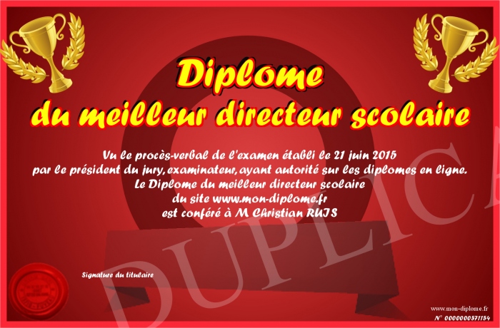 Envoyez par email votre Diplôme du meilleur directeur scolaire personalisé