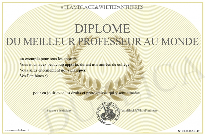 Envoyez par email votre DIPLOME DU MEILLEUR PROFESSEUR AU MONDE personalisé
