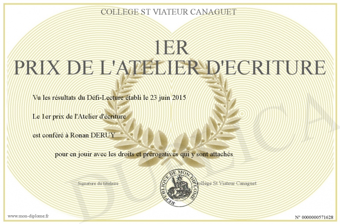 Envoyez par email votre 1er prix de l'Atelier d'écriture personalisé
