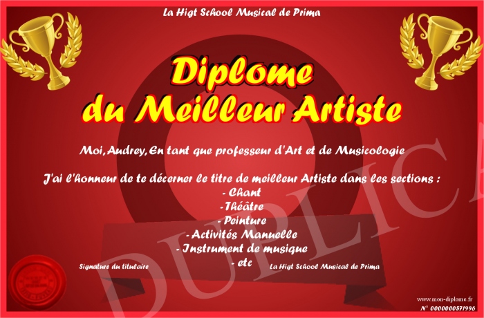 Envoyez par email votre Diplôme du Meilleur Artiste personalisé