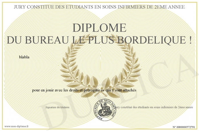Envoyez par email votre Diplôme du bureau le plus bordélique ! personalisé