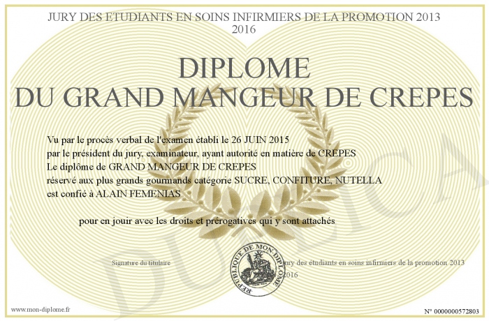 Envoyez par email votre Diplôme du grand mangeur de crepes personalisé