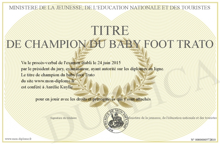 Envoyez par email votre titre de champion du baby foot Trato personalisé