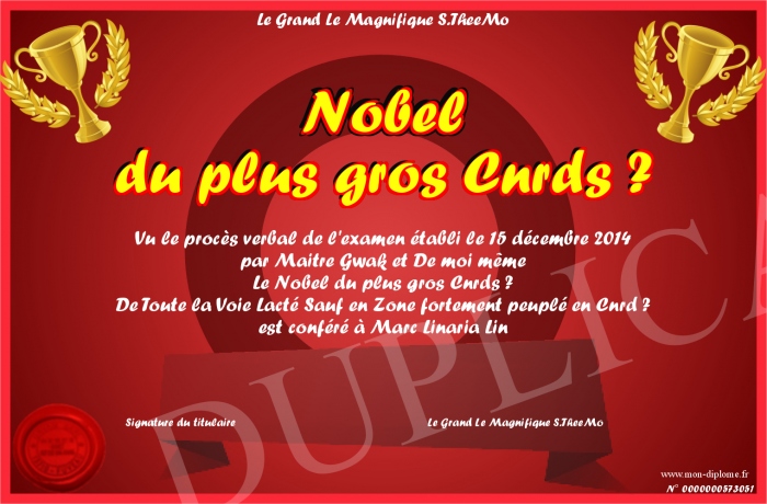 Envoyez par email votre Nobel du plus gros Cnrds ? personalisé