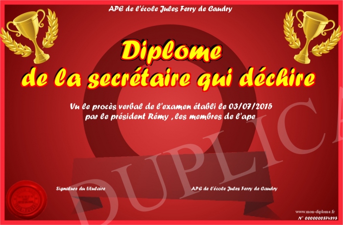 Envoyez par email votre Diplôme de la secrétaire qui déchire personalisé