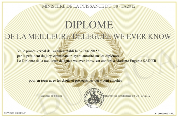 Envoyez par email votre Diplôme de la meilleure déléguée we ever know personalisé