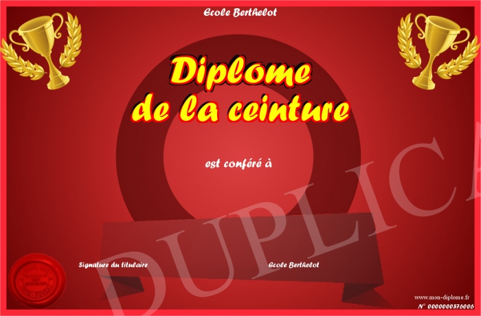 Envoyez par email votre Diplôme de la ceinture personalisé