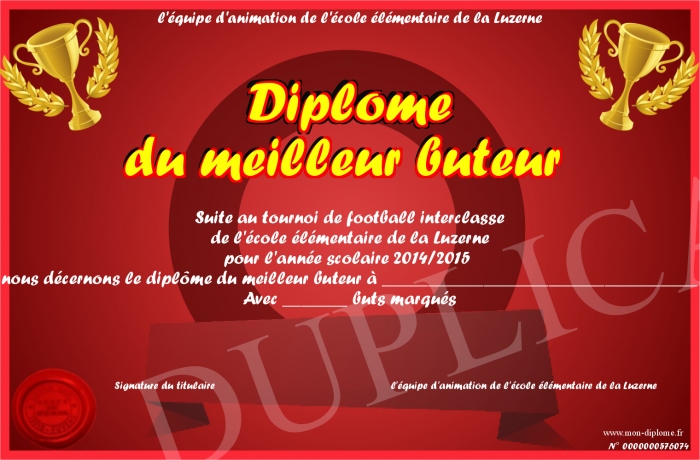 Envoyez par email votre Diplôme du meilleur buteur personalisé