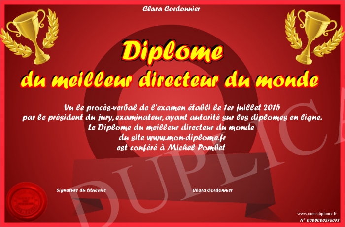 Envoyez par email votre Diplôme du meilleur directeur du monde personalisé