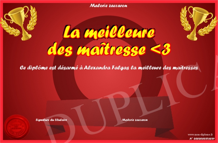 Envoyez par email votre La meilleure des maîtresse -3 personalisé