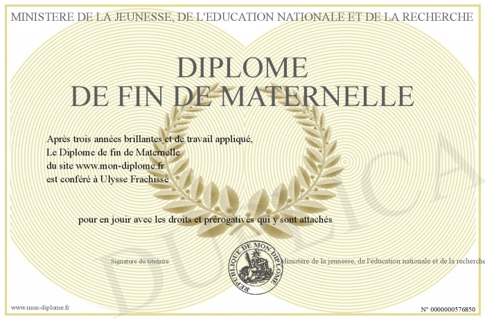 Envoyez par email votre Diplôme de fin de Maternelle personalisé