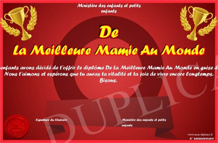 Envoyez par email votre De La Meilleure Mamie Au Monde personalisé