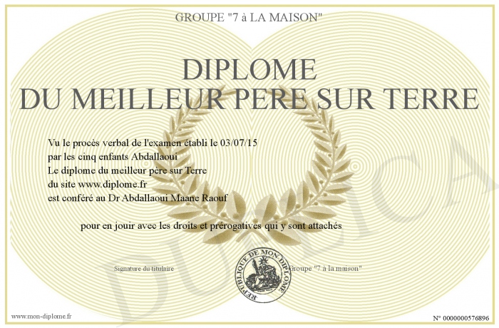 Envoyez par email votre Diplôme du meilleur père sur Terre personalisé