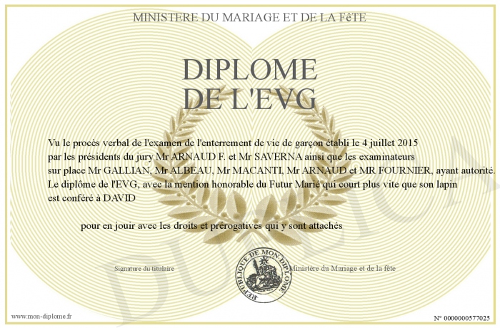 Envoyez par email votre Diplôme de l'EVG personalisé