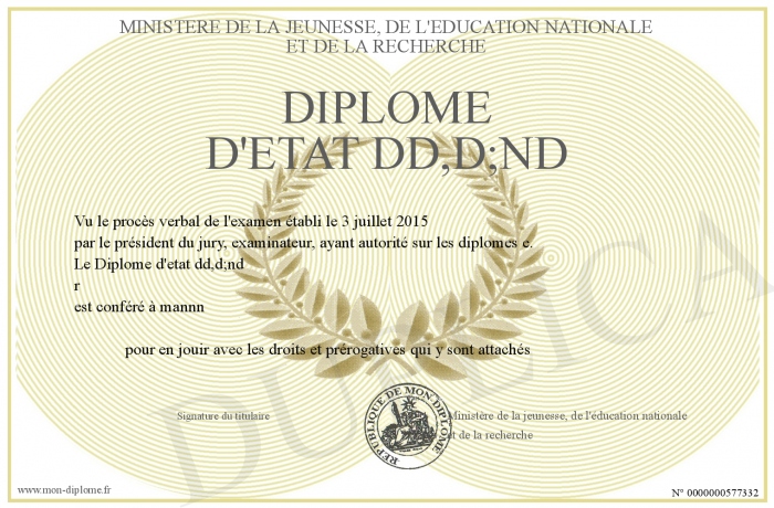 Envoyez par email votre Diplôme d'etat dd,d;nd personalisé