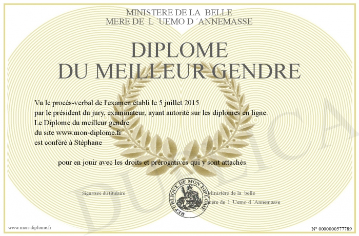 Envoyez par email votre Diplôme du meilleur gendre personalisé