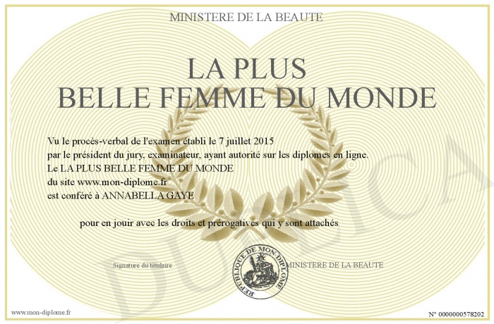 Envoyez par email votre LA PLUS BELLE FEMME DU MONDE personalisé