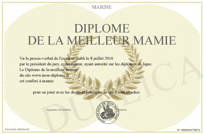 Envoyez par email votre Diplôme de la meilleur mamie personalisé