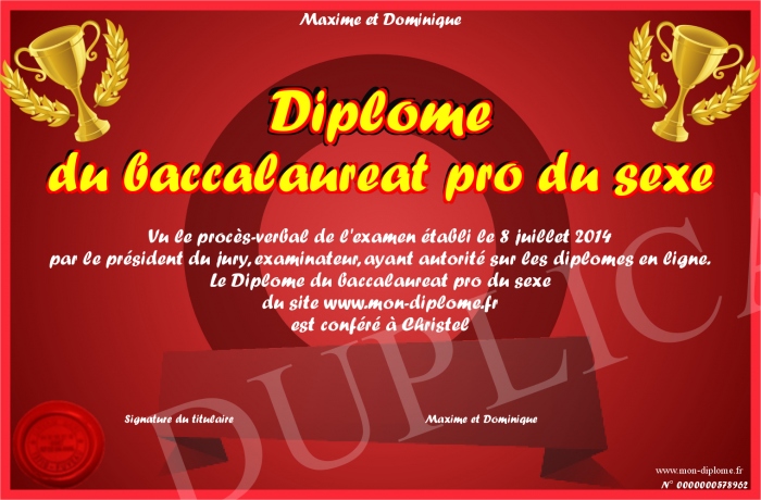 Envoyez par email votre Diplôme du baccalaureat pro du sexe personalisé