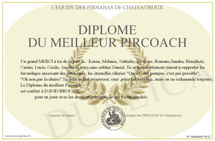 Envoyez par email votre Diplôme du meilleur Pircoach personalisé