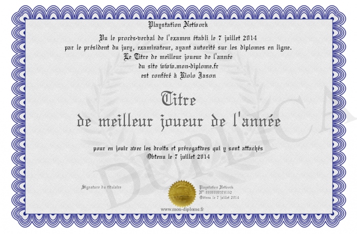 Envoyez par email votre Titre de meilleur joueur de l'année personalisé