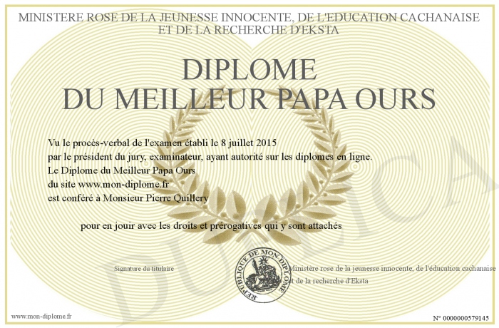 Envoyez par email votre Diplôme du Meilleur Papa Ours personalisé