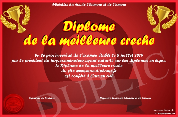 Envoyez par email votre Diplome de la meilleure creche personalisé