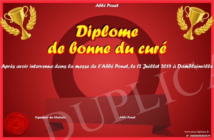 Envoyez par email votre Diplôme de bonne du curé personalisé