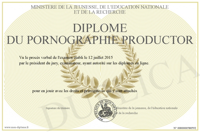 Envoyez par email votre Diplôme du pornographie productor personalisé