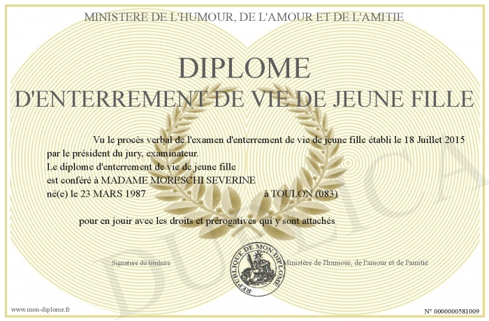 Envoyez par email votre diplôme d'enterrement de vie de jeune fille personalisé