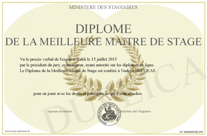 Envoyez par email votre Diplôme de la Meilleure Maître de Stage personalisé