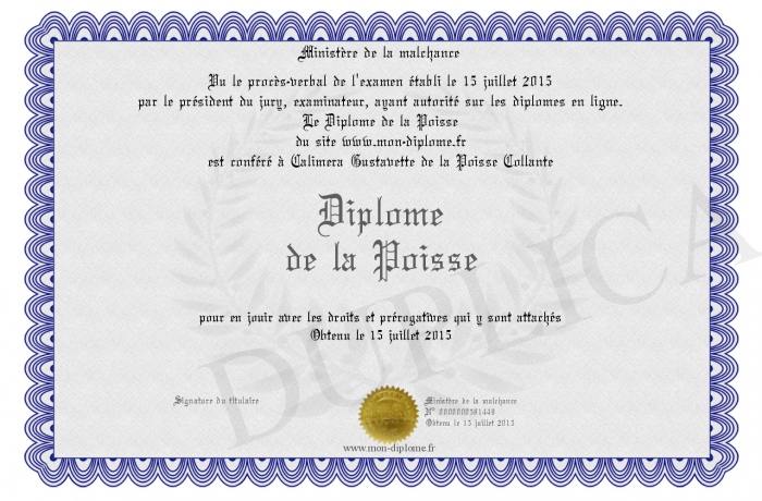 Envoyez par email votre Diplome de la Poisse personalisé