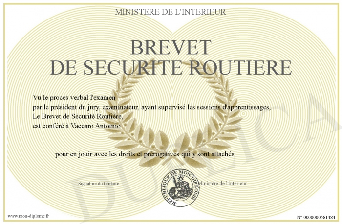 Envoyez par email votre Brevet de Sécurité Routière personalisé