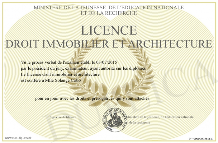 Envoyez par email votre Licence droit immobilier et architecture personalisé