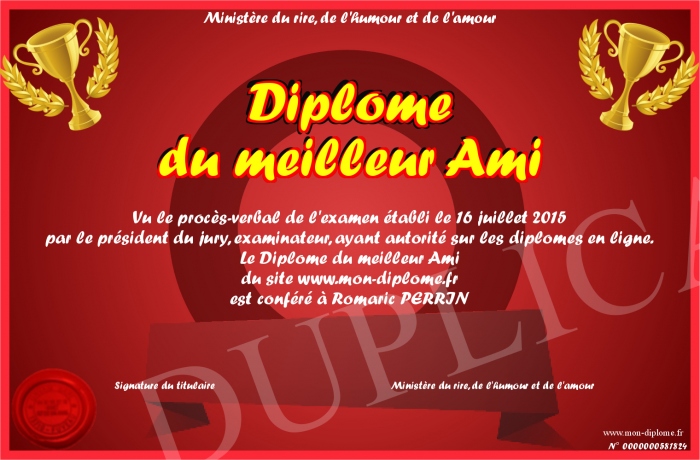 • Diplome du meilleur Ami