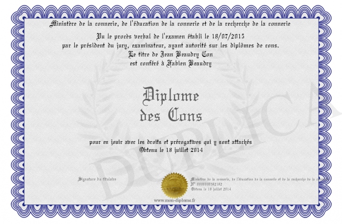 envoyé par le Ministère de la connerie, de l'éducation de la connerie et de la recherche de la connerie !