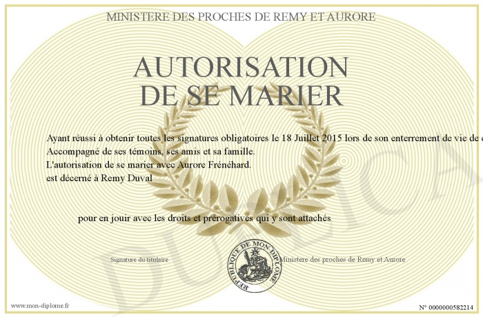 Envoyez par email votre autorisation de se marier personalisé