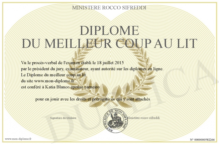 Envoyez par email votre Diplôme du meilleur coup au lit personalisé