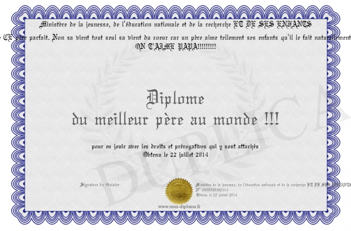 Envoyez par email votre Diplôme du meilleur père au monde !!! personalisé