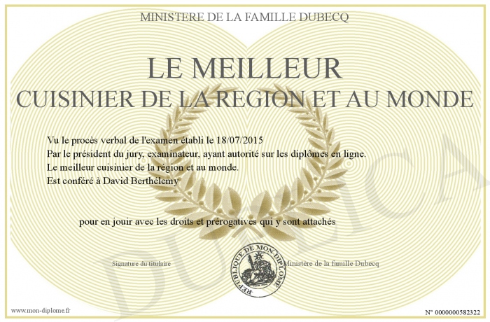 Envoyez par email votre le meilleur cuisinier de la région et au monde personalisé